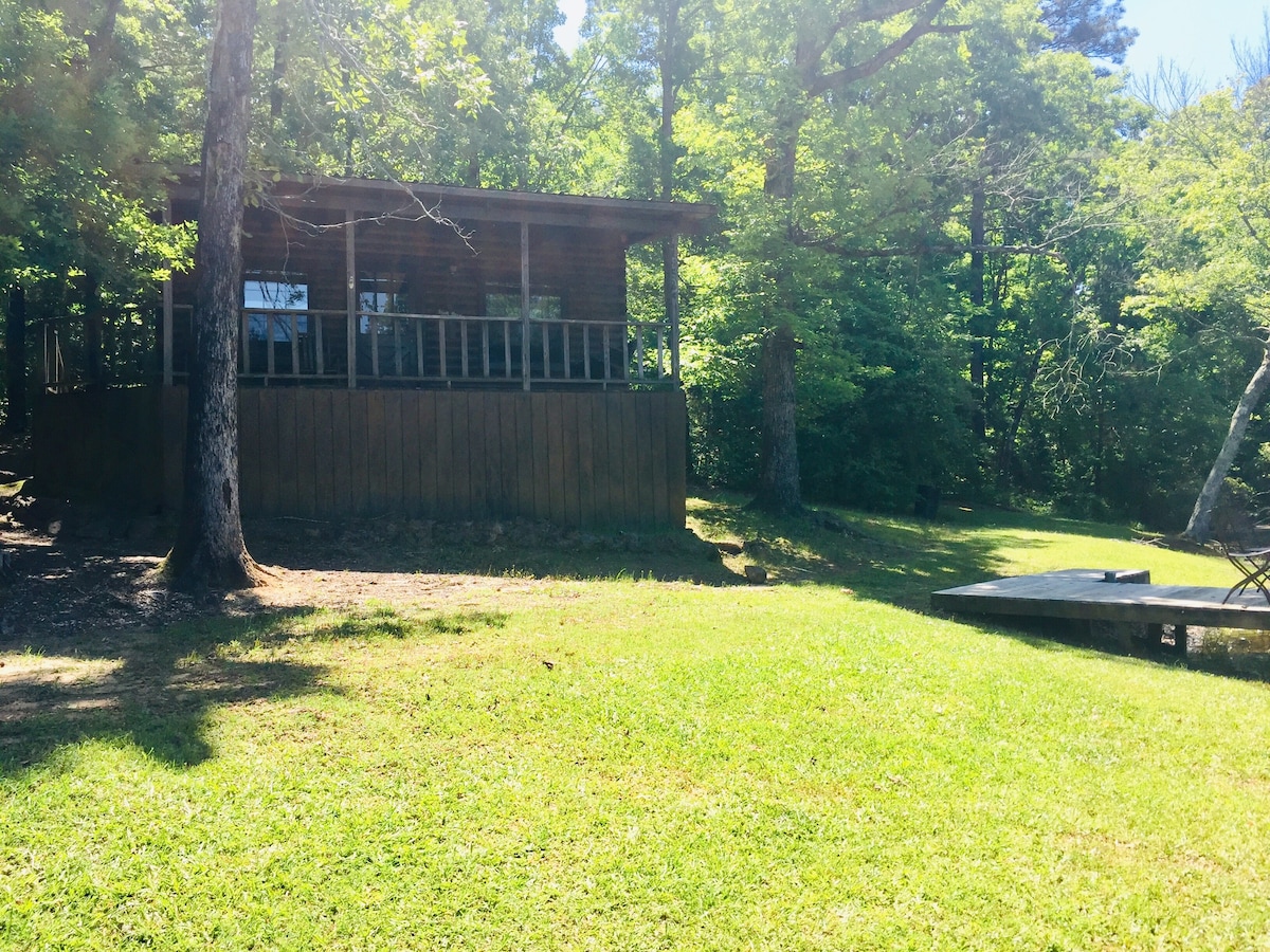 Privat landlig atmosfære i byen som ligger på 7 hektar. Mange store furu- og eiketrær, fugler og fiske og slipp fra dammen på stedet. Rikelig med plass til heste- eller båthengere å parkere. Fem til ti minutter fra restauranter og butikker hvis du ikke er i humør til å lage mat. Daglig kjæledyrgebyr $ 10,00 per dag per kjæledyr ved innsjekking av to kjæledyr. 30 lb. grense med mindre du snakker med oss først. INGEN KATTER. Du må ha med dyrekasse hvis kjæledyret blir etterlatt alene i hytta. Etter kl. 22.00 vil henvendelser bli besvart neste morgen.