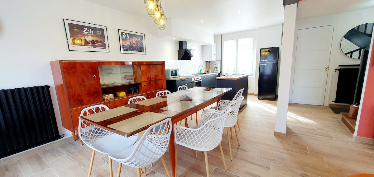 Enkel tilgang, hus med terrasse for 8 personer 6 ♡ minutter fra den legendariske 24-timers DU MANS CIRCUIT ved inngangen til svingen av den røde tertre 15 minutter fra CCI Training og videregående skole til fots eller fire minutter med buss. 12 min ♧fra ridesenteret BOULERIE JUMP 15 ◇ minutter fra sentrum ◇ 3 min fra ringveien 7 ◇minutter fra motorveien. ◇Én time fra Paris med TGV. ● Buss to minutter, deretter tilgang til trikken på fem minutter (Bugatti circuit access og south health). ●Butikker 300 meter unna (bakeri, apotek, Aldi, slakter, PMU, frisør).