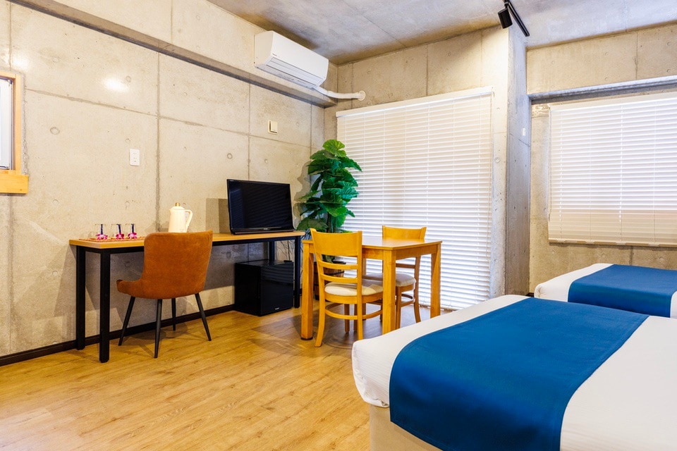 Velkommen til Kokusai Street Garden Hotel i Naha City. <Dette er et gjesterom i 3. etasje. Merk: Hotellet vårt har ikke heis.> Oppdag Naha by fra det perfekte utgangspunktet. Hotellet vårt tilbyr en førsteklasses beliggenhet, bare syv minutters gange fra den pulserende Kokusai-gaten. Den romslige studiooppsettingen gir mer plass til å slappe av enn et standard forretningshotell. Det er et dobbeltrom med to halvdoble senger. * Hvis du bor som en enkelt gjest, vil bare én seng bli klargjort. *