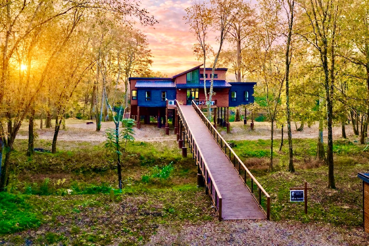 When Bora-Bora meets Treehouse Masters, you have "All is Found"! This Riverfront Cabin sits right on the Mountain Fork River in Broken Bow OK! From fishing to kayaking, from hiking to exploring, from the infrared sauna to the hot tub, from star gazing to spa like bathrooms, from campfires to the memories that will be made... you might find yourself getting a little lost... but this truly unique cabin reveals where All is Found!