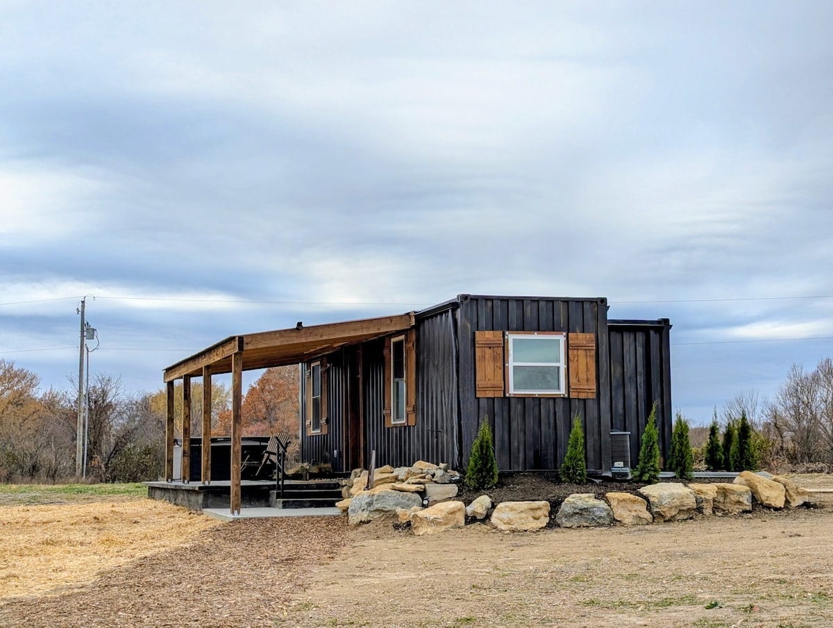 Hot tub, fire pit, rooftop patio and amazing views of the KC Skyline! 6 minutes from downtown, this property is centrally located. Just minutes from I-35 and I-70. Brand new home, with comfortable king size beds, 3 tv's and modern decor. Outdoor grill, picnic table, wood fire pit and rooftop gas fire pit. Hammocks, corn hole and board games. At the end of a quiet street on an acre of land, you will have a private stay and get to experience nature while still being close to the city!
