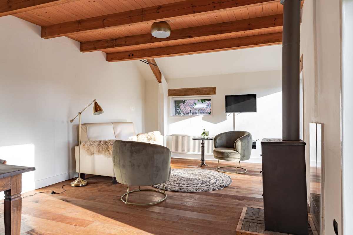 Et robust gjestehus, nybygd i 2017 på stedet for en gammel låve. Bredt plassert i utkanten, femten minutter fra Zwolle. Opplev lyset, luften, rommet, roen og den vakre stjernehimmelen. Utstyrt med to bad, finsk badstue, komplett kjøkken, sentralvarme, gasspeis, gode senger, terrasse med loungestoler, grill og bålplass, og alt du kan forvente i en luksuriøs innkvartering.