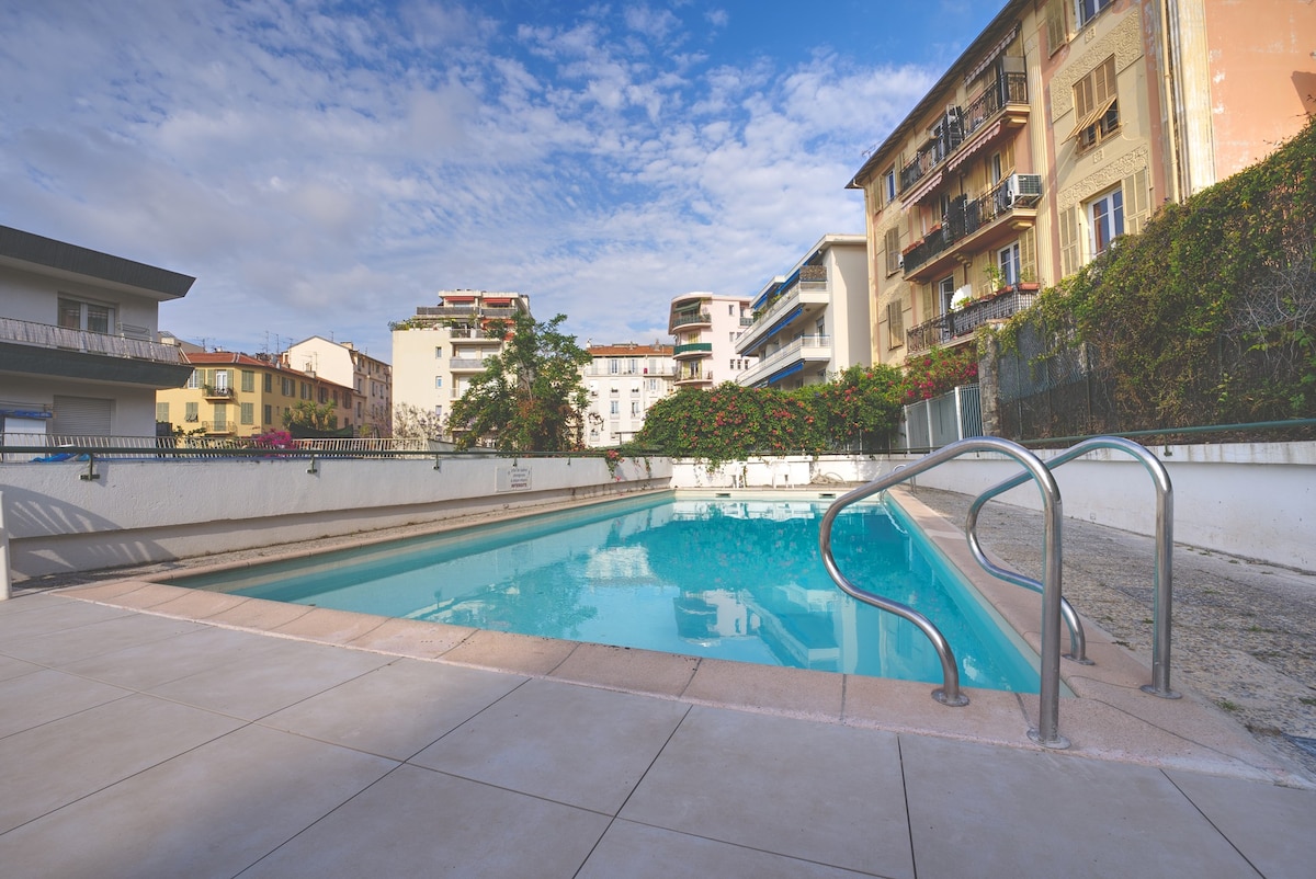 Kom og oppdag Nice og dens omgivelser ved å ta over denne sjarmerende studioleiligheten, ideelt plassert og dekorert med omhu. Noen få skritt fra Promenade des Anglais, med alle butikker i nærheten og en trikkestasjon 2 minutters gange unna for å nå sentrum på 2 minutter. Nyt denne tilkoblede boligen (fiber) og utstyrt med kjøkken, bad og stue. Slapp av på balkongen og nyt solen. Et utendørs svømmebasseng i bygningen er tilgjengelig!