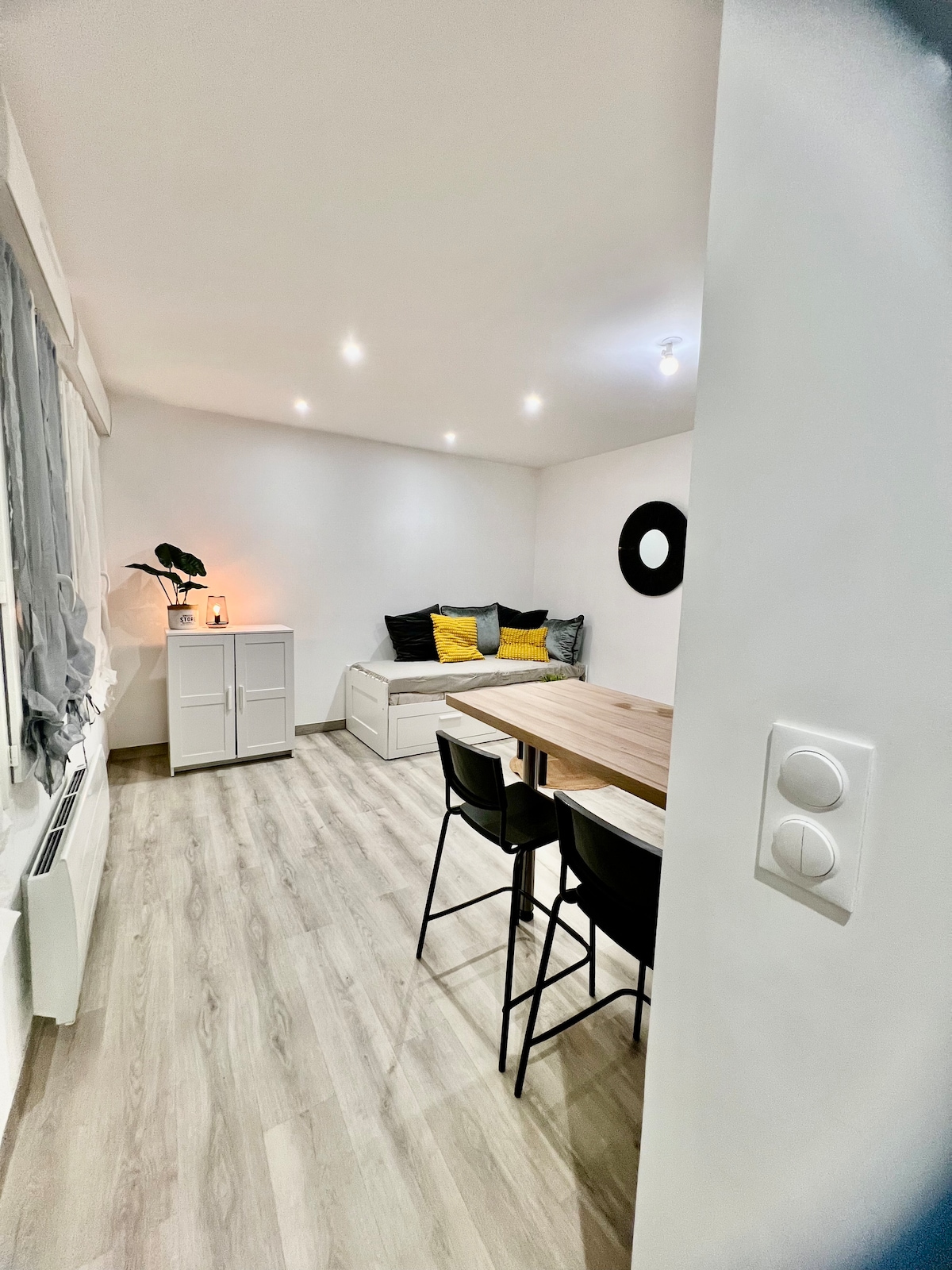 Koselig studio på 23 kvm, lyst og funksjonelt, som ligger i en trygg gårdsplass bak bygningen, helt stille og uten innsyn. Ideell for jobbreisende, unge par eller aktive mennesker. 4G trådløst nettverk, gratis parkering i nærheten fra kl. 18.00 til 09.00. Bare fire minutter fra trikken B «Croix Morin» og et steinkast fra sentrum, butikker, togstasjonen og bredden av Loire. En ekte kokong i hjertet av Orleans.