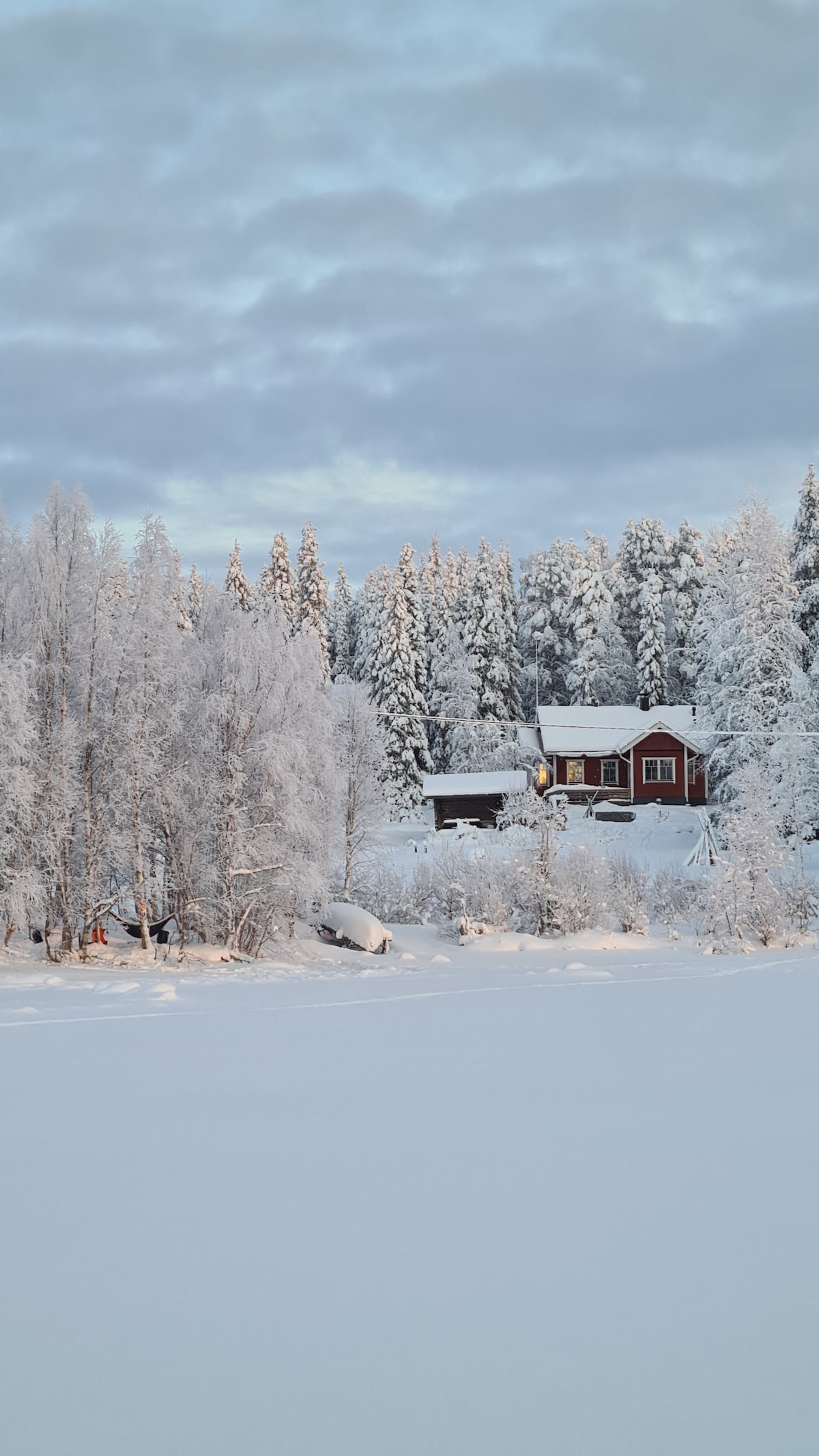 Et koselig, kompakt og økologisk minihus ligger ved bredden av en innsjø i en autentisk og vanlig liten landsby i Lappland. Minihjemmet har også alt du trenger for en vedovn, vi hjelper deg med oppvarming av badstuen, trådløst nettverk. De store vinduene gir en vakker utsikt mot innsjøen og den nordlige himmelen. Dette mobile minihuset er også flott for et lengre opphold, så bare et sted å bo er en opplevelse midt i aktivitetene. Boblebad mot et tilleggsgebyr, for øyeblikket ikke i bruk.