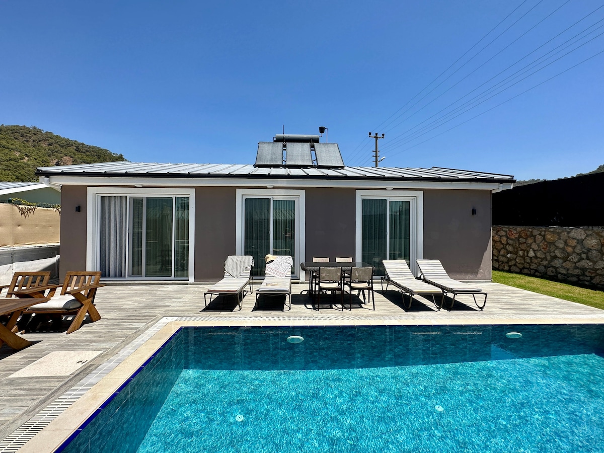 Villaen vår er 2+1 og har sitteplass på 90 m2, en romslig hage på 450 m2, 32 m2 basseng, jacuzzi i hagen, med privat ly, innendørs og romslig struktur. Det ligger fire km fra Fethiye basar, tre km fra Çalış-stranden, 8 km fra Ölüdeniz og 50 km fra Dalaman lufthavn. Bytransport og transport med taxi er lett tilgjengelig. Vi ser frem til å ha en hyggelig tid og en god ferie.