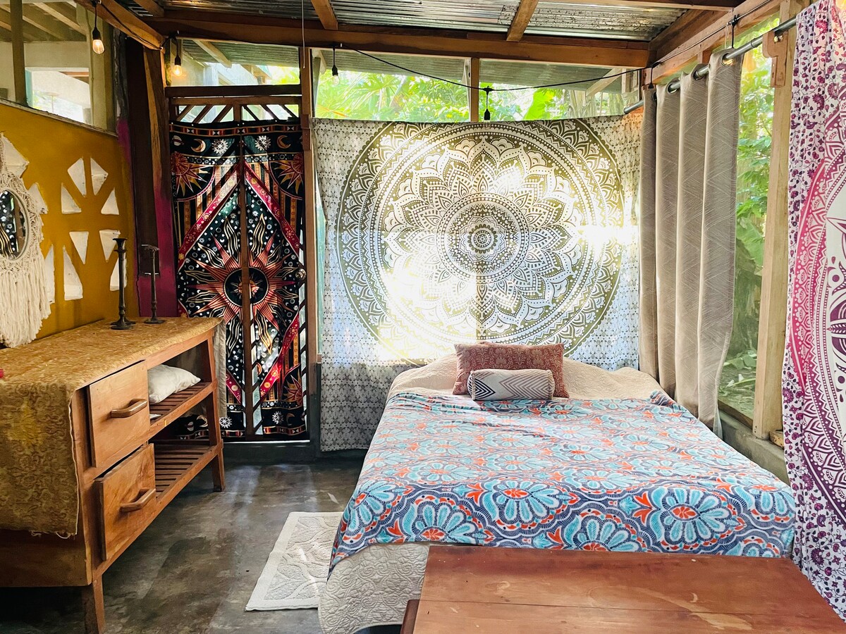 Reis til en fredelig jungelhytte på Ometepe-øya Oppdag din egen private hytte uten innlagt strøm, som ligger blant frukttrær og frodige hager, hvor de fredelige rytmene i øylivet setter tonen for oppholdet ditt. Hytta er helt privat, med en koselig utendørs dusj og mulighet til å nyte et bål under stjernene. En merknad om avstand: Hytta vår ligger bortgjemt i naturen. Den passer perfekt for lette reisende og eventyrlystne. Ta med håndterbar bagasje til spaserturen fra parkeringsområdet.