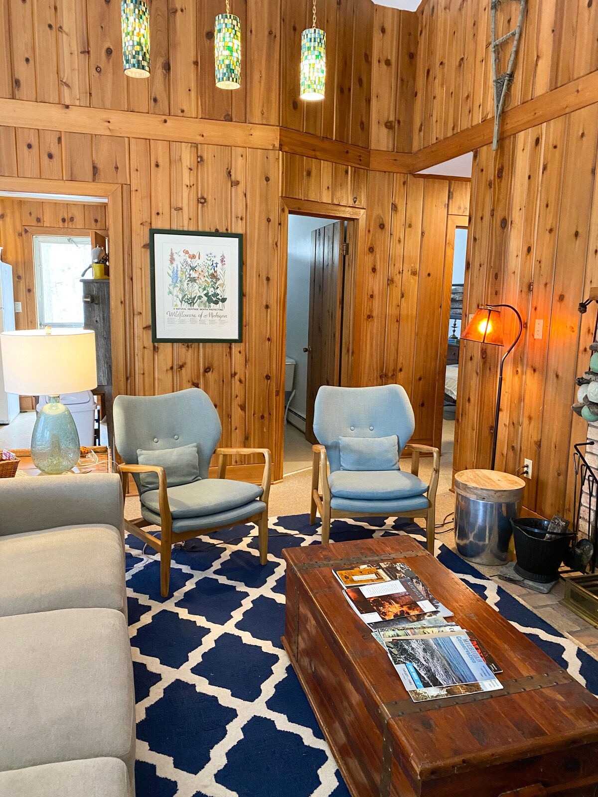 Spesialbygget tre-roms redwood-hytte fra 1975 i sanddynene. MCM-linjer, vintage møbler, Malm-peis fra 1960-tallet, Stern Lord of the Rings pinball, stor utendørs bålpanne. Klatre opp sanddynen for å forelske deg i vår magiske del av Lake Michigan! *Trenger du mer plass? Spør om å legge til Riverside Retro Camper, som har plass til opptil seks personer med kjøkken og bad for $ 100 per natt, $ 400 per uke. (Bilder på forespørsel.)