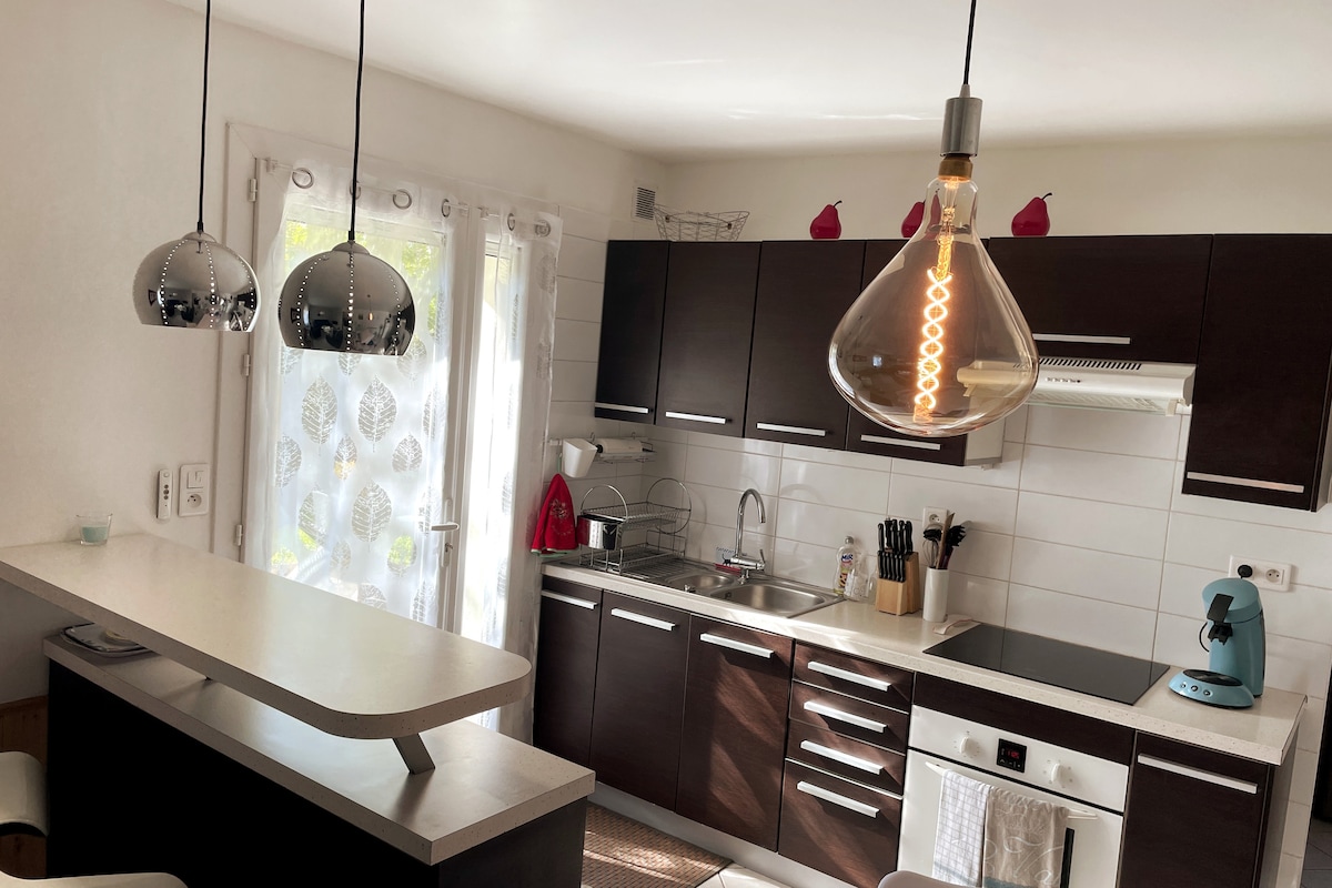 Møblert toromsleilighet på ca. 50 m² i første etasje i et frittstående hus med egen inngang, ti minutter med bil fra Rodez sentrum. Gratis, privat parkering med GREEN UP-kontakt for lading av elektriske kjøretøy 1 fullt utstyrt kjøkken mikrobølgeovn kjøleskap oppvaskmaskin kaffemaskin vaskemaskin. 1 stue med TV, BZ 160 x 200 senger 1 barneseng 1 bad, Separat toalett 1 spiskammer. Tilgang til en privat hage Håndklær, sengetøy og sjampo er til rådighet