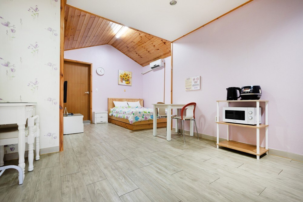 I mai, den varmeste måneden på året, I mai, et varmt rom for bare ett lag Lag verdifulle minner :) ※ Bruksanvisning - 20 000 KRW rabatt per natt for to netter eller mer - Parkering i bakgatene rundt - Utendørs kokeutstyr (elektrisk grill) - Utendørs takterrasse (campingstoler, lykt, pikniksett) - Marshall Bluetooth-høyttaler - Selvbetjent bar (bagel, blåbærsyltetøy, kremost, risnudler, Andong sikye, kapselkaffe, O'Sherlock-te) - Individuelle fasiliteter, himalayansk rosa saltbadeprodukt (unntatt tannbørste og tannkrem) - Beam-projektor (YouTube, Netflix, kabel-TV) / WiFi - Yut og ulike spillverktøy - Tesett (blomsterte) ※ Bestillings- og prisinformasjon Hverdager (søndag til torsdag) 230 000 KRW for 2 personer Helg (fredag til lørdag/helligdager) 280 000 KRW for 2 personer * Opptil 4 personer/1 person ekstra +20 000