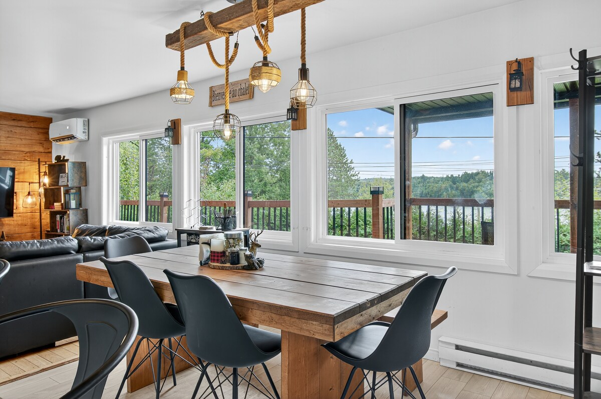 Stor rustikk og varm hytte: vannkant, spa, innendørs og utendørs peis. Et ideelt sted å slappe av som par, familie eller venner. La deg selv bli oppslukt av Laurentides naturen og kom og nyt bading, kajakkpadling og fotturer. En rustikk og varm trehytte: vannkant, spa, vedfyrte peis. Ideelt sted å slappe av som par, med familie eller venner. Fordyp deg i Laurentides' natur og nyt bading, kajakkpadling og fotturer.