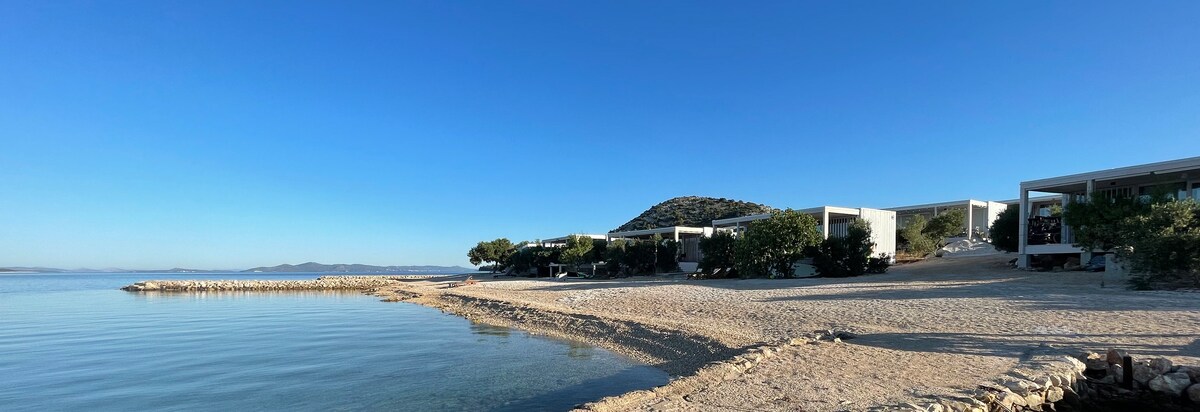 Denne sjarmerende dalmatiske stein- og trehytta ligger i en fredelig olivenlund på den avsidesliggende, rolige siden av øya, og tilbyr ekte ro. Helt utenfor strømnettet og soldrevet, men likevel gjennomført utstyrt med trådløst nettverk, varmt vann og oppvaskmaskin for moderne komfort. Bare 150 meter fra en krystallklar strand. Fra huset kan du nyte en utrolig panoramautsikt over Kornati nasjonalpark. Perfekt for deg som søker fred, natur og autentisk øyliv.