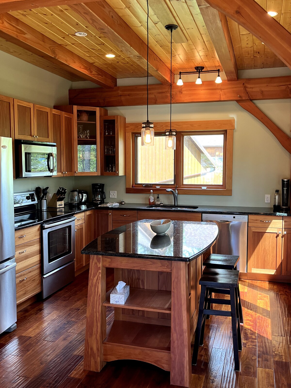 Bo på vår rolige tømmerrammehytte med tilgang til en av Albertas mest uberørte strender! Få skritt fra Marten Beach, nyt soling, vannsport og fiske. Hytta har plass til åtte personer og har et moderne design med rustikk sjarm, høyt tak, store vinduer, en koselig peis og en vedpizzaovn. Med et fullt utstyrt kjøkken, grill på terrassen, komfortabel stue og flere soverom, sikrer det et perfekt opphold for familier eller grupper.