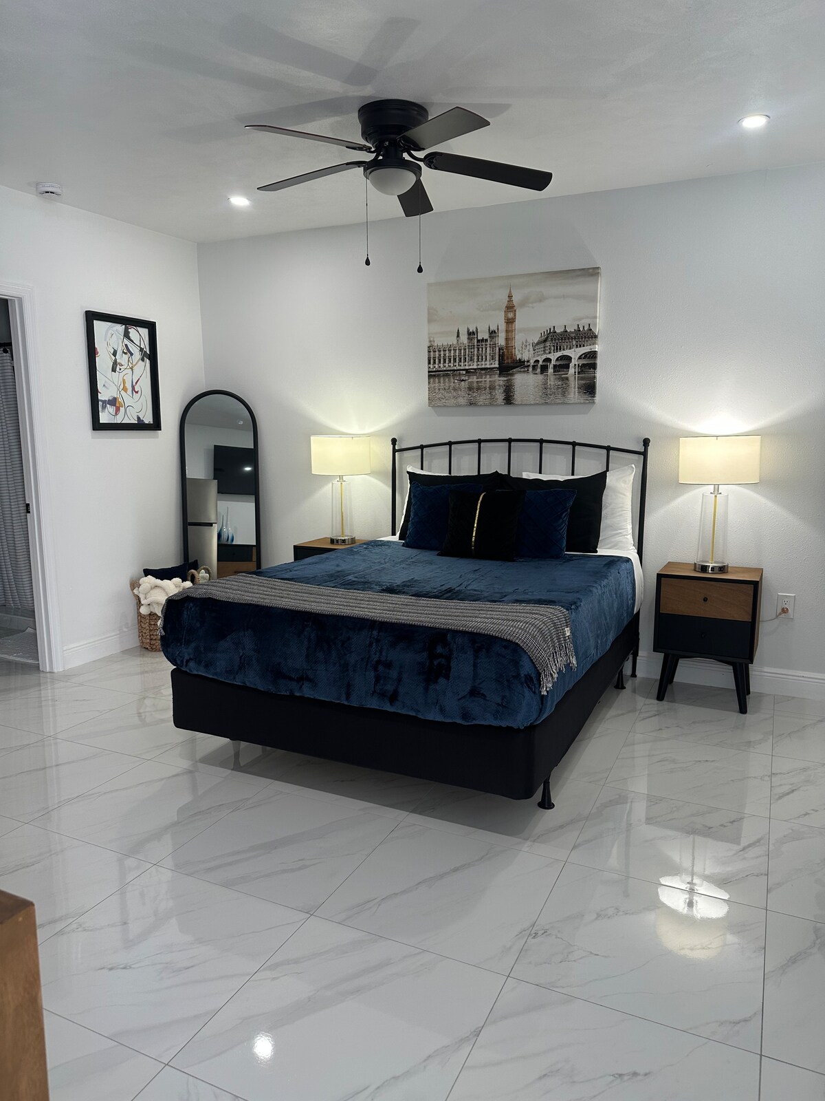 Dette vakkert innredede gjestehuset tilbyr et rolig til å trekke seg tilbake til, med dobbel vask, en stor dusj og et luksuriøst bad. Nyt fullstendig privatliv fra hovedhuset når du går inn i det avsidesliggende rommet ditt gjennom en egen inngang og terrassehage. Enten du søker en romantisk ferie eller en fredelig soloferie, tilbyr dette gjestehuset den perfekte flukten. – Orlando lufthavn: 16 minutter. ⁃ Orlando sentrum: ti minutter. ⁃ Disney-parker: 25 minutter. ⁃ Universal studio: 27 minutter.