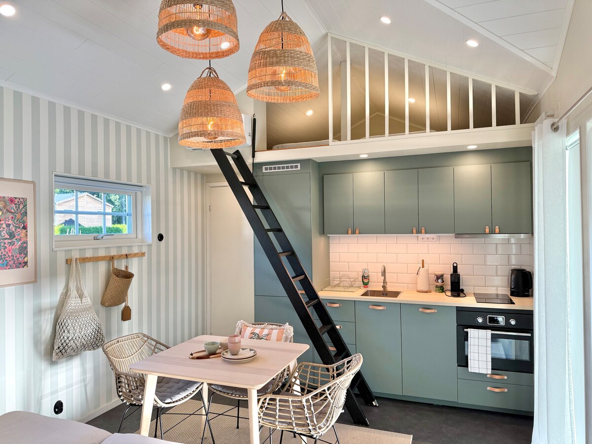 Nybygd attefall-hus med seng for fire personer. Ett soverom med to enkeltsenger. En romslig hems med relativt høyt tak med to sengeplasser. Stue med sovesofa og spiseplass. Kjøkkenområde med kjøleskap, komfyr, vannkoker og kaffemaskin. Tilgang til uteplass og grill. Sengetøy og håndklær er inkludert hvis ønskelig. I nærheten av golf, havn, innsjø og skog. Noen kilometer til Askersund.