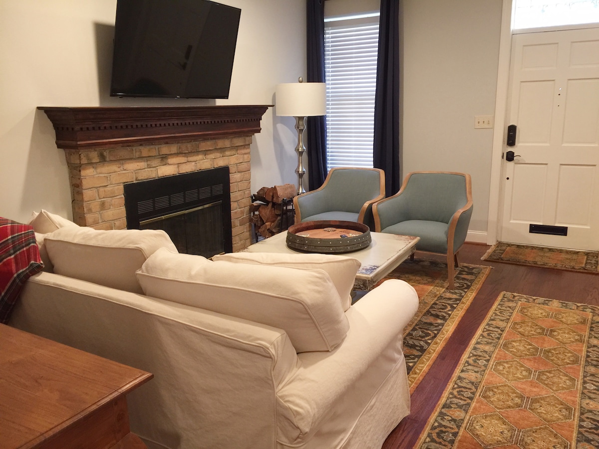 Jeg heter John S Marsiglia. Alltid ren, veldig komfortabel ny kingsize-madrass, varm og koselig peis, innsjekking uten vert, historisk 2207 E Baltimore St. Søk på nettet. 900 kvadratfot. 12 fots takhøyde, fullt utstyrt kjøkken/kjøkkenkrok, kaffe, te, krem, Brita filtrert vannkrukke, 50" 4K smart-TV, kun strømming, gratis Netflix, Prime, topphastighets WiFi, surroundlyd, komfortable rene møbler, antikviteter, orientalske tepper, arbeidsplass m/skrivebord, moderne vakkert bad, doble dusjhoder og seter, privat full størrelse W&D