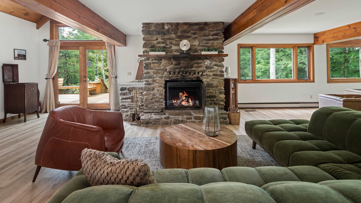 Romslig rekkehus med fire soverom som har plass til ti personer og ligger mindre enn ett minutt fra Jay Peak Resort. To soverom oppe (hvert med queensize-senger) og et rom med køyesenger nede gir rikelig plass til familiens skiferie. I første etasje ligger kjøkkenet, spisestuen og en stue med peis. Hvis du trenger å jobbe litt, er det et kontorrom utstyrt med en dobbeltseng og smart-TV. Varm deg opp i dampsaunaen eller boblebadet etter en lang dag på fjellet.