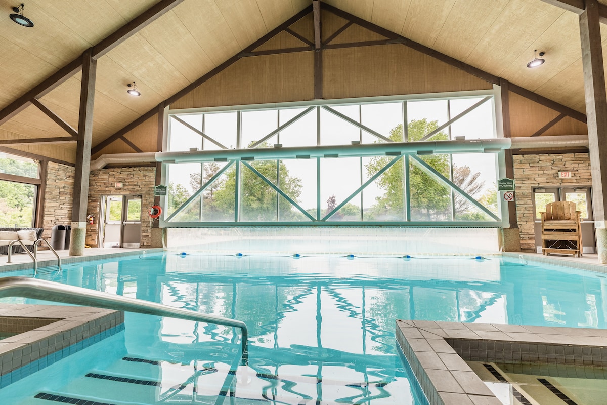 Opplev avslapning i vårt tre-roms rekkehus ved vannet på Friday Harbour Resort! Dette koselige tilfluktsstedet har komfortabelt plass til 6 personer, og tilbyr det perfekte stedet for en rolig ferie. Nyt tre terrasser for utendørs spising, en privat brygge for båten eller PWC-en din, og enkel tilgang til Lake Simcoe. Nyt måltider på nærliggende restauranter ved vannkanten eller utforsk naturskjønne naturstier. Oppholdet ditt lover komfort, eventyr og uforglemmelige minner ved innsjøen!