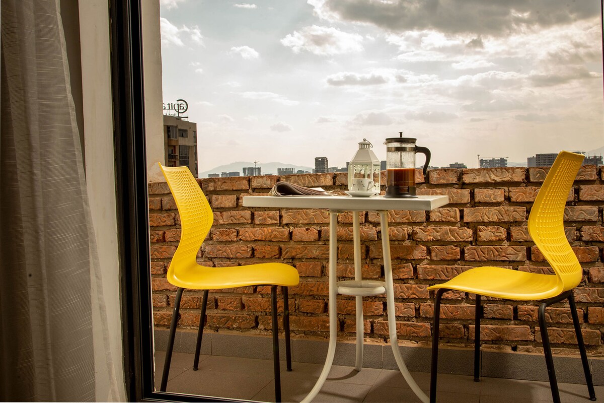 Nyt en moderne og koselig 2BR-leilighet i nærheten av Jemo, perfekt for forretninger eller fritid. Dette fullt møblerte rommet har TV, et fullt utstyrt kjøkken og vakker utsikt over Addis Abeba. Sikker bygning med døgnåpen vakthold, parkering og enkel tilgang til butikker, restauranter og transport. Eksklusive perks: Gjestene har gratis tilgang til treningsstudioet til et av Etiopias beste treningssentre, som ligger i samme bygning, pluss en gratis spa-økt en gang om dagen uten ekstra kostnad.