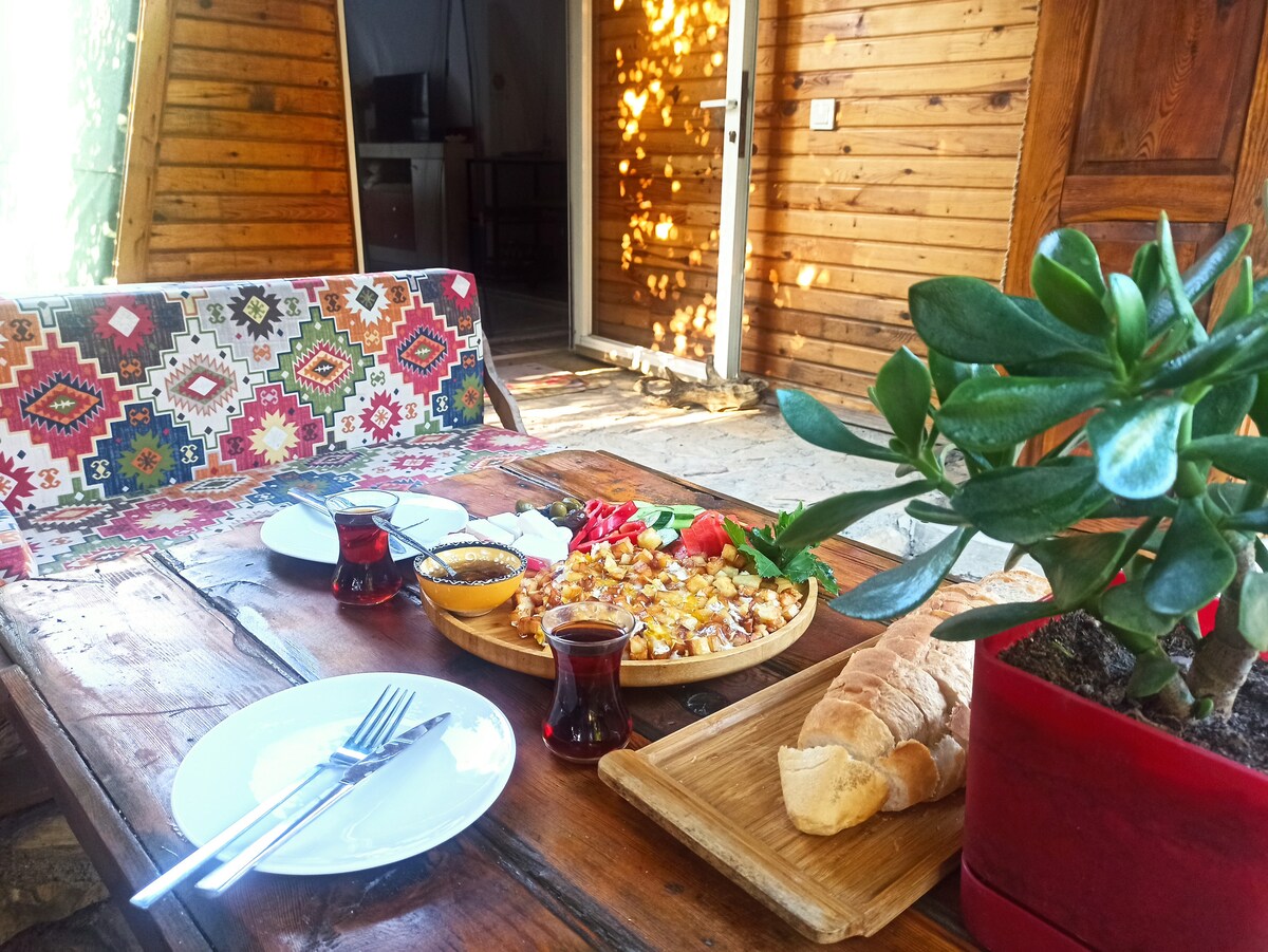 Ca. 50 meter fra nærmeste sted hvor du kan se kongenes graver, på motsatt side av Dalyan-elven (du kan nå den med ferge fra kl. 08.00–23.30 eller med landtransport, du kan komme ved å vandre rundt den unike KÖYCEĞİZ-sjøen). Et unikt sted for deg som ønsker å nyte stillheten og stjernekikkingen, og bare et skritt unna ligger Dalyan bar-gaten. Dessverre har vi ikke frokostalternativer i år, men den populære kafeen bare 20 meter unna er ganske god til det.