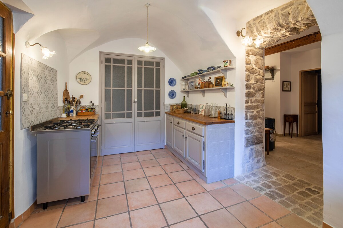 Mellom Cévennes og Camargue, i det historiske distriktet i en autentisk landsby i Gard med en tyrefektingtradisjon, ligger en smakfullt renovert bolig fra det 18. århundre, som harmonisk kombinerer det gamle og det moderne. Ti minutters gange: badesenter, elv, grøntområde, marked og alle butikker. Stor stue på 80 kvm og overbygd terrasse. Vakker anlagt hage. Veldig komfortabelt. Kanalisert klimaanlegg. Perfekt for familier eller vennegjenger. Førsteklasses fasiliteter. Gratis parkering.