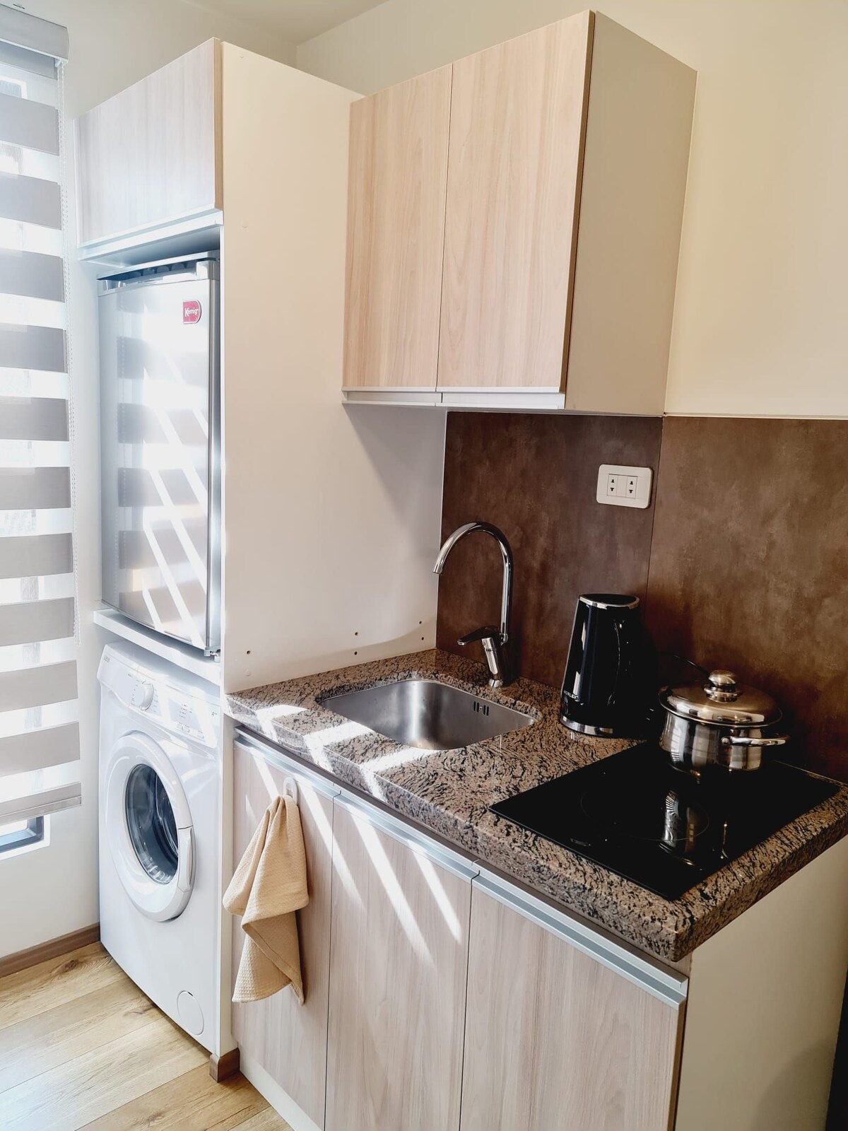 This comfortable studio apartment is ideal for couples seeking a practical and well-located stay. It's on the third floor and features a double bed, perfect for both short and long stays. Located near the stadium, in a central and easily accessible area, the building is quiet and well-connected, ideal for relaxing after a day of work or sightseeing. A functional, welcoming space with an excellent location. And all forms of transportation are within easy reach for getting around the city.