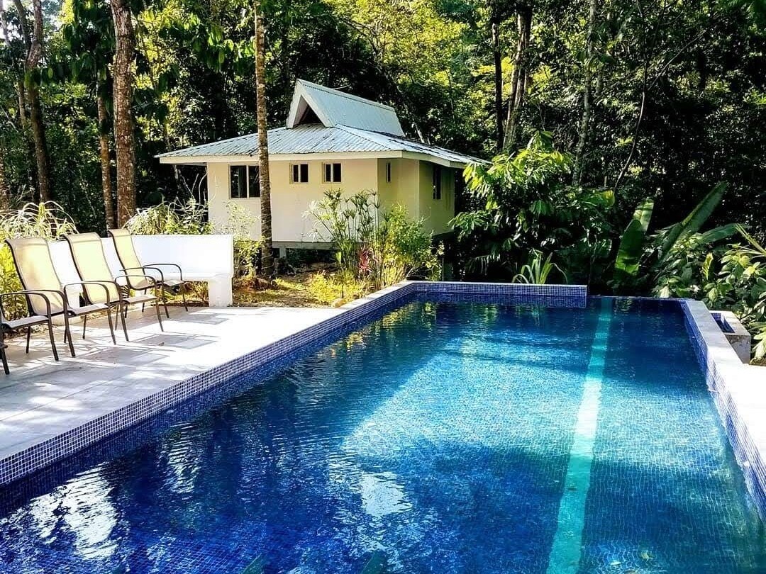 Velkommen til Mountain House på The Sutton. Dette er ett av tre hjem i boutique-stil på eiendommen. Hjemmet er omgitt av jungelen og all dens strålende natur. Lei en for deg og den spesielle personen, eller alle tre for en gruppevillaopplevelse med bekvemmeligheten av private overnattingssteder. Hver enhet har sin egen overbygde terrasse utstyrt med et tekjøkken for de som vil ha en avslappende frokost på sengen om morgenen. Eiendommen deler en rancho perfekt for felles måltidsforberedelse og spisestue med utsikt over bassenget, soldekket og den tropiske hagen.