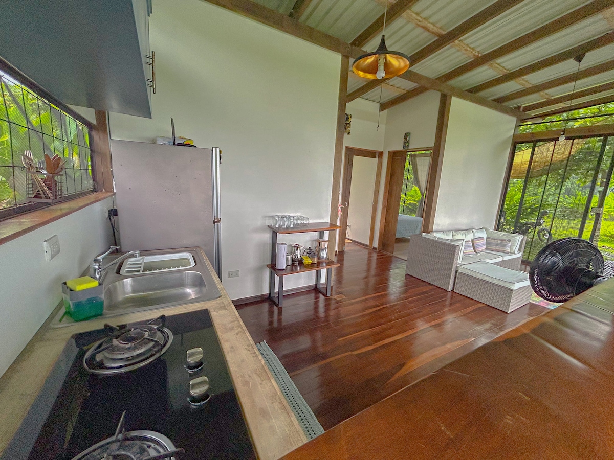 «Gå gjennom porten … ta en gigantisk utånding … og slapp av i ren lykke» Koselig privat hytte ved elven med tilgang til elven og fantastisk utsikt over fjell og jungel. Delte hager, sauna og basseng. Fem minutters spasertur til landsbyen Kanaan (sommerfuglkuppel, gastropub, bakeri, ostegård) og ti minutters kjøring til Kapi Kapi (organisk kafé og marked), de hemmelige hagene, ørretgården og Cloudbridge/Talamanca-reservatene. Enkel tilgang til Chirripó nasjonalpark og én time med bil til Nauyaca Falls og Dominical-stranden.