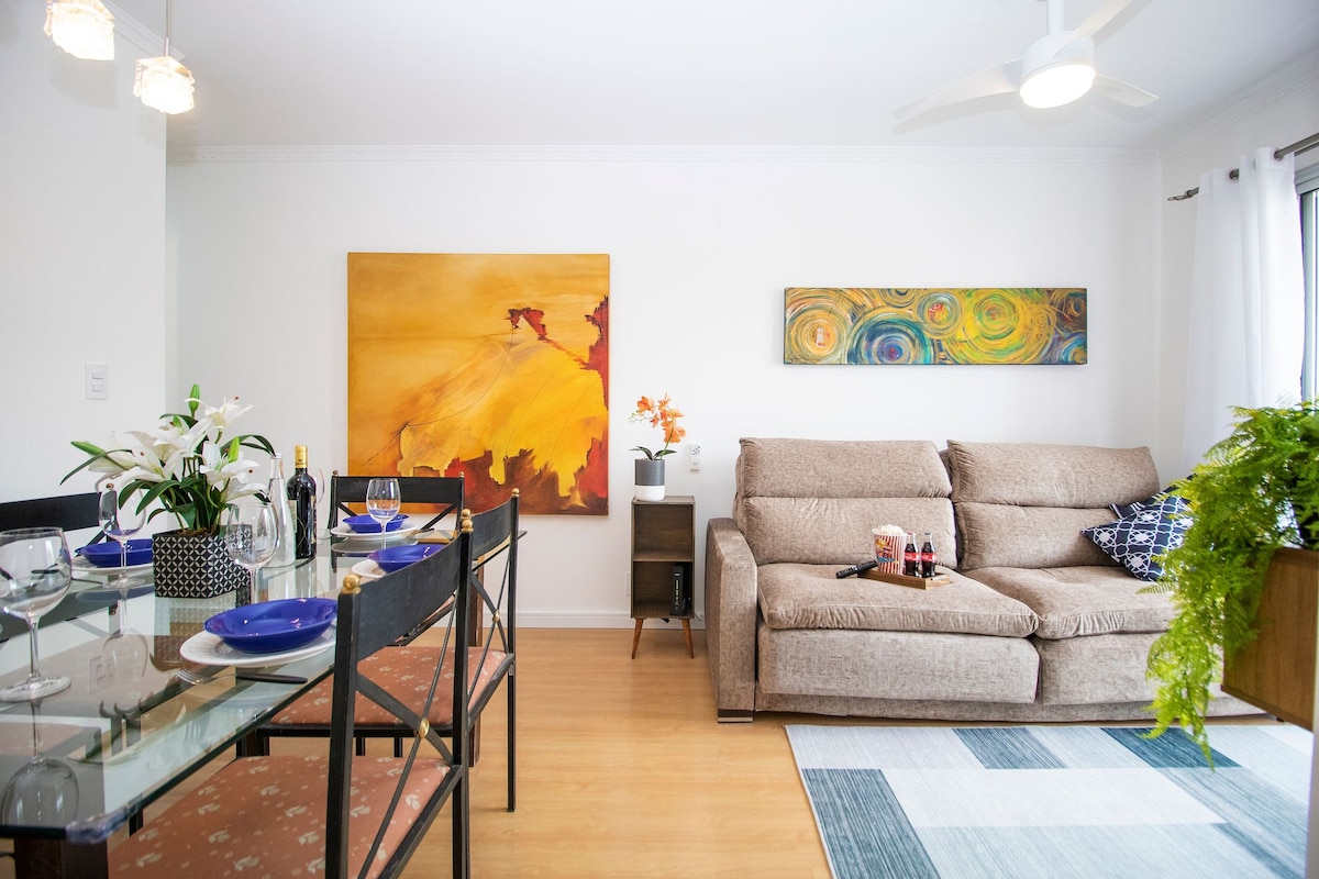 Vakker komplett leilighet og vakker utsikt i sentrum av Osasco! Komplett kjøkken med utstyr og hvitevarer (mikrobølgeovn, kokeplate, elektrisk ovn, nespresso kaffemaskin, brødrister og vannfilter). 65" smart-TV i stuen og 55" på soverommet. Soverom med queen size-seng og sovesofa i stuen. Denne leiligheten ligger i det sentrale området, to minutter fra shopping og marked, og garanterer en utmerket beliggenhet og fasiliteter i nærheten. Parkering har en egen kostnad.