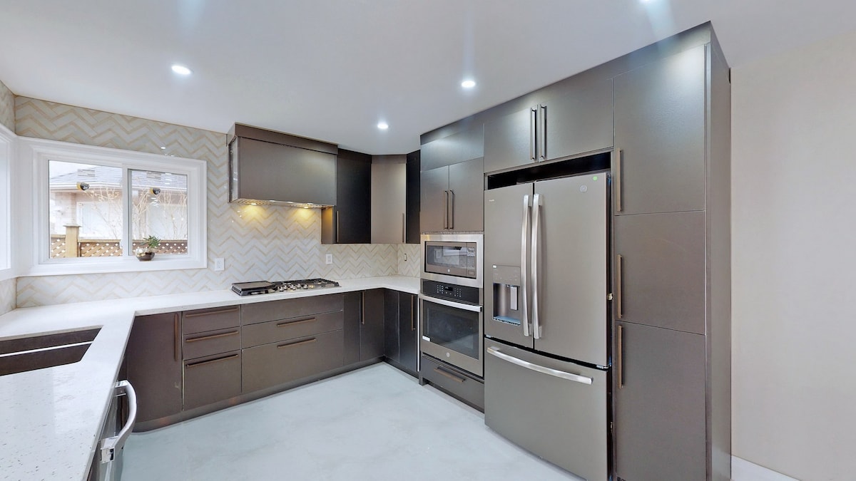 Opplev et romslig, moderne hjem med fire soverom i North Oshawa, nøye designet med stilig innredning av høy kvalitet for komfort og avslapning. Nyt et lyst stueområde med en 65-tommers smart-TV, et fullt utstyrt kjøkken, en egen arbeidsplass og vaskerom i enheten. Gå ut på terrassen med grill, perfekt for utendørs spising. Perfekt for familier, grupper eller lengre opphold. Beliggenheten er kun noen minutter fra Hwy 407, med enkel tilgang til shopping, restauranter og nødvendigheter, og den tilbyr et raffinert og praktisk opphold.