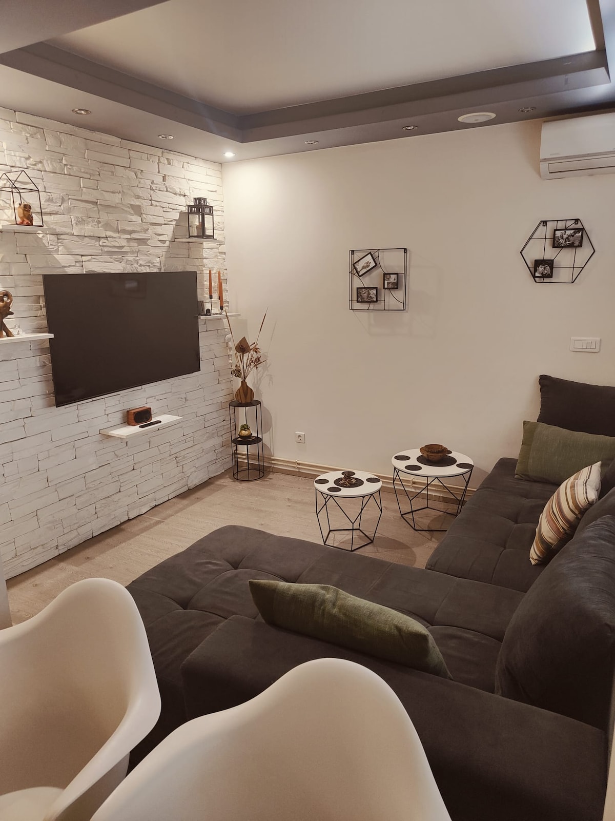 Ny leilighet i nærheten av den gamle byen Tvrdja og citadellet ved elven. Beliggenheten er svært sentral. Taxi dekker 90% av byen for 3 euro. Leiligheten består av ett soverom og en stor stue og spiseområde. Rolig og avslappende område omgitt av naturen, men veldig nærme sentrum. Ved siden av sykkelruten og Copacabana-stranden. Utstyrt med klimaanlegg, gratis wi-fi, kjøkken, bad, stor flatskjerm-TV. I nærheten av naturparken Kopački rit. Kjæledyrvennlig.