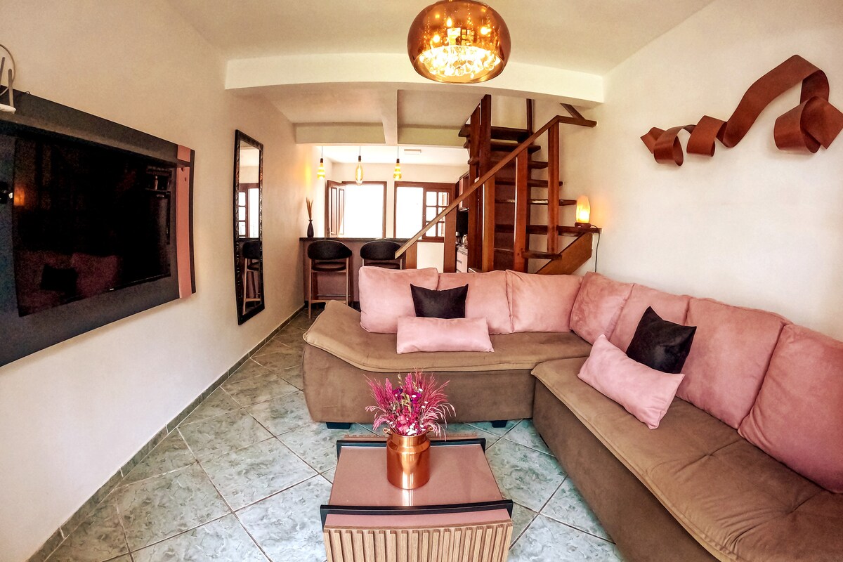 Hele huset, to soverom, suite, trådløst nettverk, klimaanlegg. Nær stranden, med svømmebasseng, peis og en stor stue med god ventilasjon.