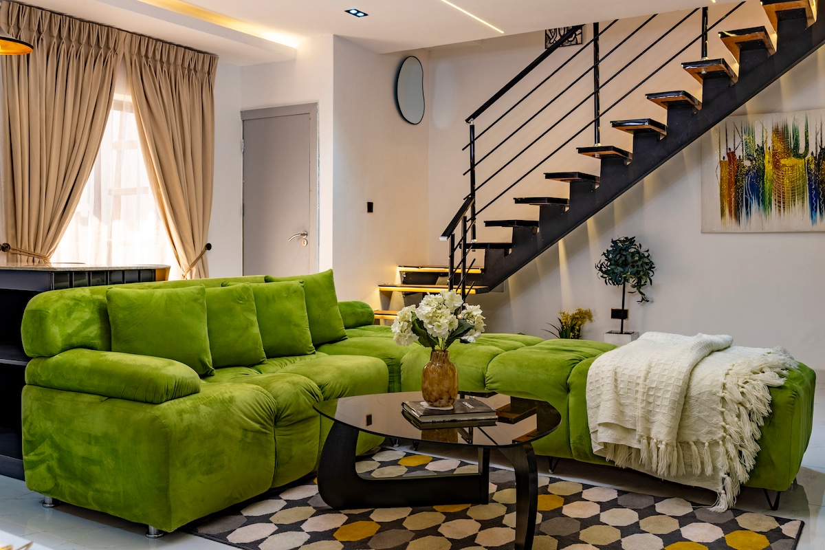 Opplev luksus i denne stilige leiligheten med tre soverom, eget bad og elegant interiør. Bare fem minutter fra Lagos lufthavn og tre minutter fra Ikeja City Mall. Nyt raskt 5G trådløst nettverk, smart-TV, klimaanlegg, komplett kjøkken, vaskemaskin/tørketrommel og strøm døgnet rundt i en inngjerdet eiendom med uniformert sikkerhet. Perfekt for familier, grupper eller forretningsreisende. Egen innsjekking og profesjonell ledelse for et sømløst opphold.