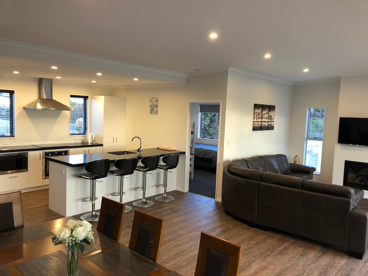 Fredelig fristed i parklignende omgivelser, bare noen minutter fra flere flotte strender og Otaki Gorge/River. Utstyrt med spa er dette det perfekte stedet å slappe av på. Huset er et moderne arkitektonisk designet tilfluktssted med 3 soverom (6 sengeplasser), 3 bad, kjøkken, scullery og stor hage med modne trær. Solskinn året rundt og flott for avslapning. Peisen holder deg lun om vinteren. Ingen fester, røyking eller gjester.