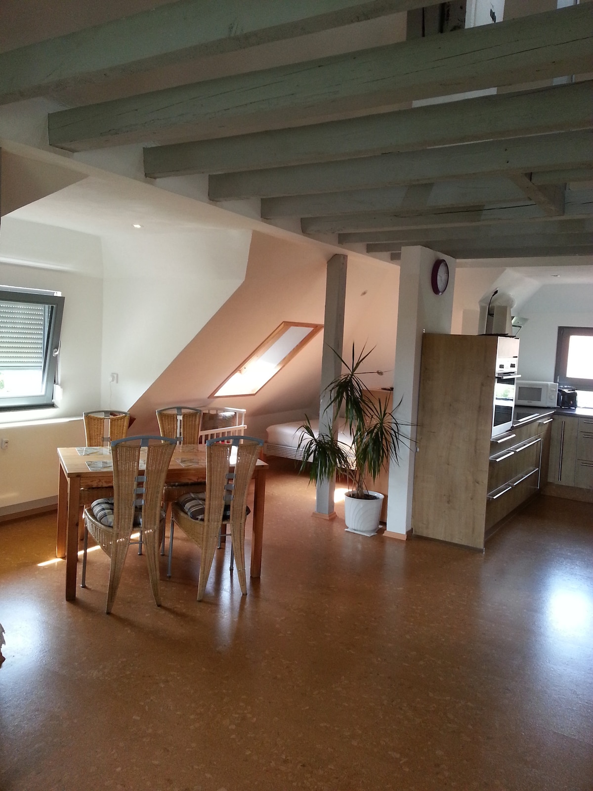 I det tidligere atelieret i eierens hage er kunsten fortsatt til stede, og gir den rustikke og koselige boligen på ca. 45 kvm og over 2 etasjer sin spesielle sjarm. En liten sitteplass under kastanjetreet og en murgrill kan brukes når det er fint vær. Sentrum med alle butikker, bussholdeplass og mye mer ligger innenfor 2 minutters gange, togstasjonen med regional- og ekspresstogstasjon innenfor 10 minutter. Til den kjente badesjøen går du 20 minutter