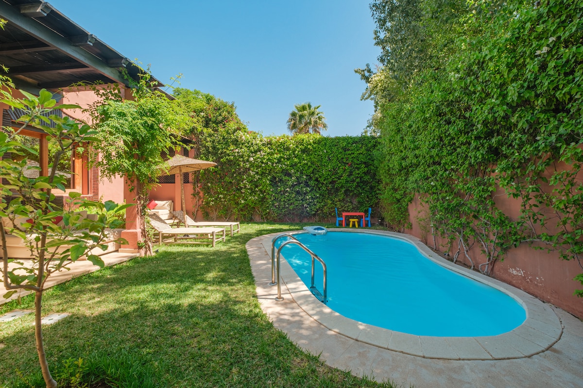 ✨ Velkommen til ditt tilfluktssted i Marrakech, eksklusivt for familier og par som ønsker ro, komfort og sikkerhet. Vi er veldig oppmerksomme på ro og renhold, og alltid tilgjengelige for gjestene våre. ✨ Ligger 8 minutter fra sentrum. Nyt et uforglemmelig opphold med et privat basseng, et lite privat treningssenter, luksuriøse avslapningsområder og mange førsteklasses fasiliteter. Nyt måltidene som er tilberedt av hushjelpen vår.