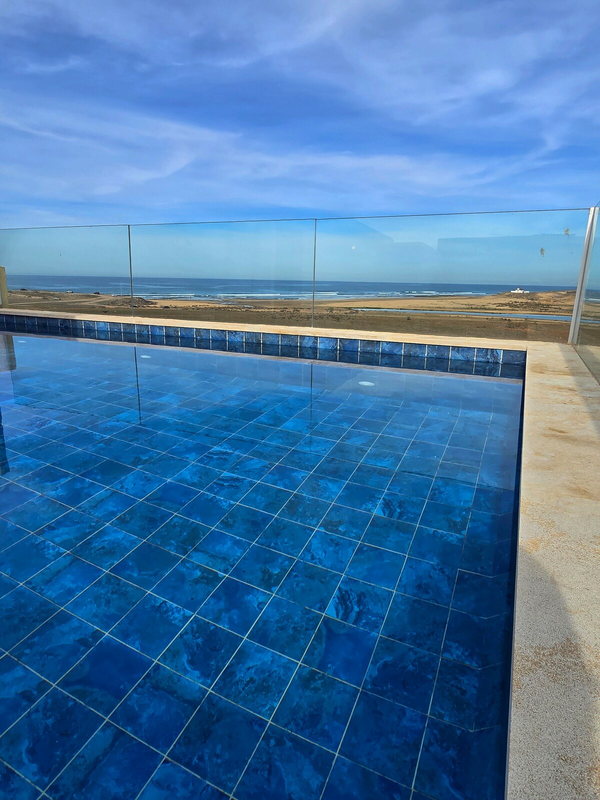 Appartement panoramique baigné de soleil avec terrasse face à l’océan et petite piscine privée. Suite parentale avec TV et salle de bain. Deuxième chambre avec accès terrasse. Deuxième salle de bain. Salon confortable, Smart TV, Netflix et Wi Fi, cuisine équipée avec bar, climatisation centrale. Résidence clôturée et sécurisée avec parking et garage. Grande piscine commune ouverte toute l’année. Plage de Cherrat et Bouznika à quelques minutes. Calme absolu. Idéal pour familles et couples.