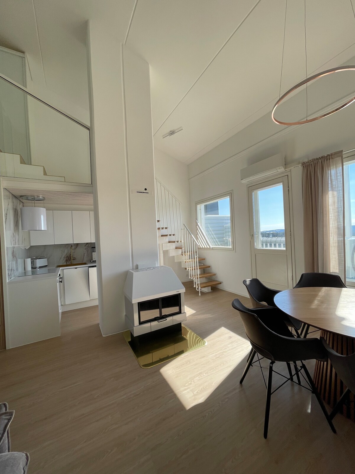 Utsiktsleiligheten Aarni tilbyr en unik mulighet for avslapning. Beliggenheten i øverste etasje sikrer fantastisk utsikt over farer, som kan beundres fra både stuen og fra din egen balkong. Leilighetens moderne innredning og smakfullt renoverte områder gir et koselig og luksuriøst opphold. Avslapning er kronet av et dampbad som inviterer deg til å nyte varm damp på slutten av en lang dag. Dette hjemmet gjør det enkelt å glemme hverdagens rush og nyte en ferie til det fulle.