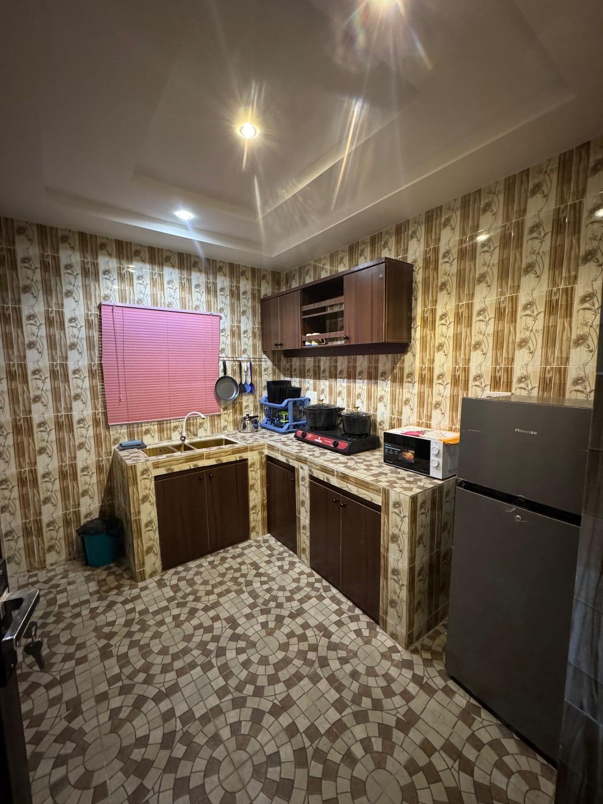 Welcome to your cozy and peaceful getaway! This stylish apartment offers a calm and cool environment designed for relaxation and comfort. Whether you're visiting for work, a short stay, or a weekend escape, this space provides everything you need to feel at home. Our facilities include 24-hour power supply, high-speed Wi-Fi for guests, and CCTV surveillance for enhanced security. The environment is peaceful and designed to provide maximum comfort during your stay.