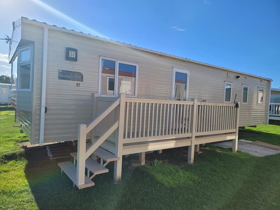 Nyt lyden av naturen og havet som krasjer mot steinene når du bor i denne nydelige statiske campingvognen i den roligere enden av parken. Nær stranden og fiskesjøen, men bare en kort spasertur til klubbhuset for mat og underholdning. Pass må kjøpes separat fra klubbhuset for svømming og andre aktiviteter. Et ekte hjem hjemmefra for hele familien. Tre soverom og to bad. Sengetøy er tilgjengelig mot en ekstra kostnad. I vintermånedene er klubbhuset og bassenget stengt.