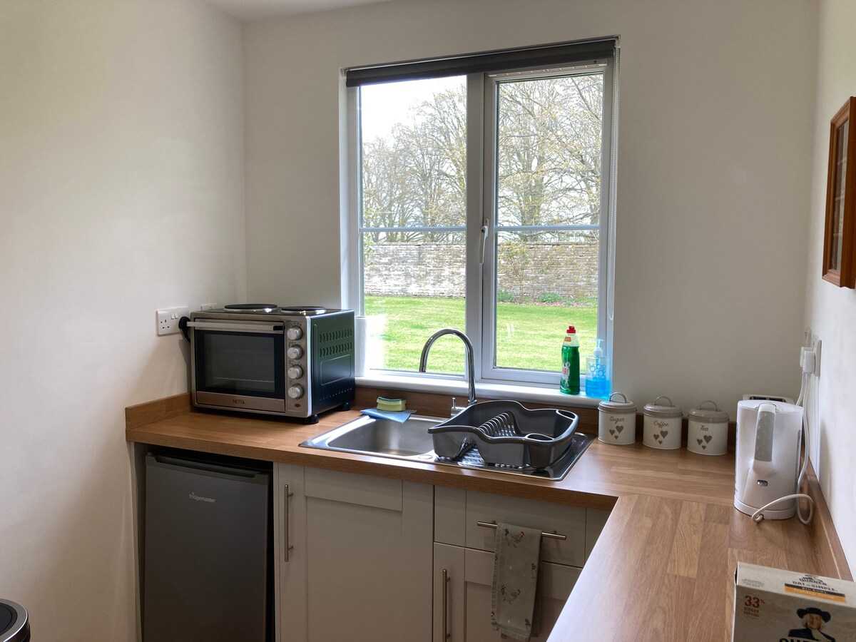 Et romslig anneks med ett soverom, eget kjøkken og dusjrom. Tilgang via egen dør (pass på hodet!). En liten inngangshall fører inn i et kjøkkenområde, et dusjrom og videre inn i et stort soverom vendt sørover med høyt tak og store vinduer med utsikt over plenen foran hovedhuset. Slapp av i den komfortable sofaen eller nyt måltidene dine ved spisebordet. Fullt utstyrt for korte eller lengre opphold. En 20 minutters spasertur over åkrene til The Farmer's Dog pub.