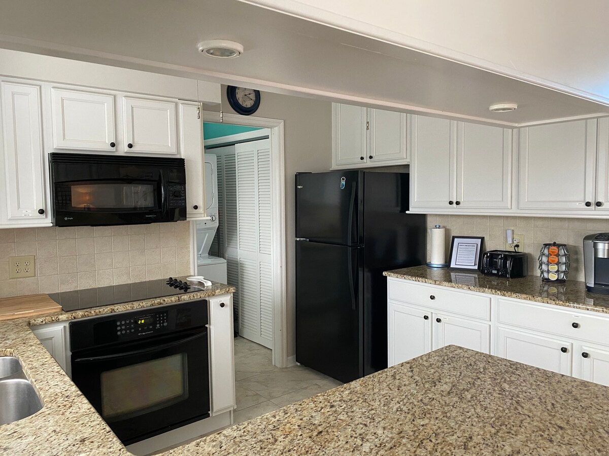 Dette huset med ett soverom tilbyr én queensize-seng og en uttrekkbar sofa for totalt fire personer. Huset tilbyr en privat båtrampe, brygger og rask tilgang til golfen. Inkluderer trådløst nettverk, to TV-er, vaskemaskin/tørketrommel, bålplass, grill, kaffetrakter. Nyt solnedganger, naturspaserturer og fisking fra bryggene. Rent, rent, rent! ALT vaskes etter hver gjest, inkludert laken, håndklær, alle tepper, sengetøy og til og med dekorative putetrekk. Alle håndtak, knotter, fjernkontroller og dusjen er desinfisert.