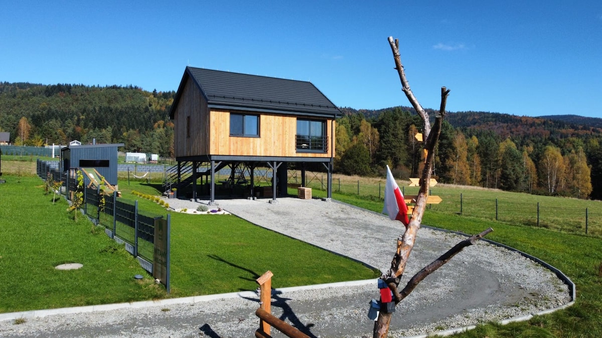 Zapraszamy do nowego komfortowego domu z bali położonego w wyjątkowo zacisznym zakątku malowniczej Sidziny. Nasz dom łączy w sobie tradycyjne budownictwo drewniane z nowoczesnością , funkcjonalnością i komfortem. Z okien domu jak i z tarasu rozpościera się zachwycający widok na wzgórza Beskidu Żywieckiego. Wnętrza zaprojektowaliśmy tak, aby zapewnić każdemu z Gości prywatność i wygodę. Duże przeszklenia pozwalają podziwiać otaczającą przyrodę z każdego z pokoi . Odpocznij w sercu natury :)