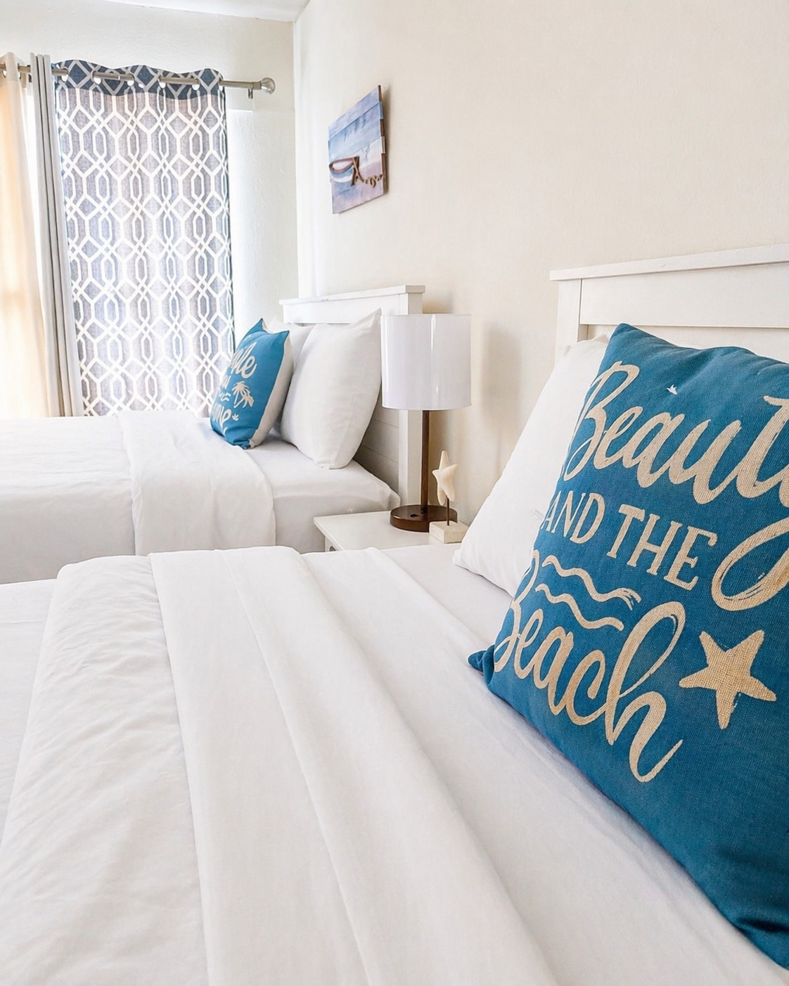 Denne leiligheten har et hovedsoverom med en queensize-seng, to køyesenger i gangen og en sovesofa i stuen. Kjøkkenet er utstyrt med alle apparater og matlagingsutstyr, som servise, redskaper, kaffetrakter, mikrobølgeovn, blender og brødrister. Spiseområdet har plass til seks personer. Denne enheten ligger i første etasje, noe som gjør det veldig praktisk å laste inn/ut kofferter og dagligvarer. Noen få skritt til stranden. Det beste ved denne leiligheten er beliggenheten, som har mange fasiliteter innenfor gangavstand.