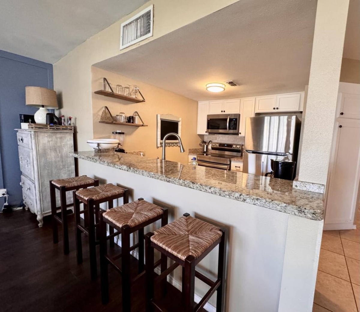Fullt renovert leilighet på North Padre Island i nærheten av Brewster Street Icehouse. Aruba Bay 210 har helt ny finish, moderne bekvemmeligheter og gjennomtenkte oppgraderinger som skiller seg ut fra typiske utleiesteder på øya. Nyt en strand du kan gå på, to oppvarmede bassenger, vannsklier, plaskebasseng, grillområder og tilgang til Kokomo Yacht Club med pickleball, shuffleboard, treningsutstyr og spill. Kommer snart: Sandbox Beach Bar. Utsikt over solnedgangen er inkludert. LIC#304618