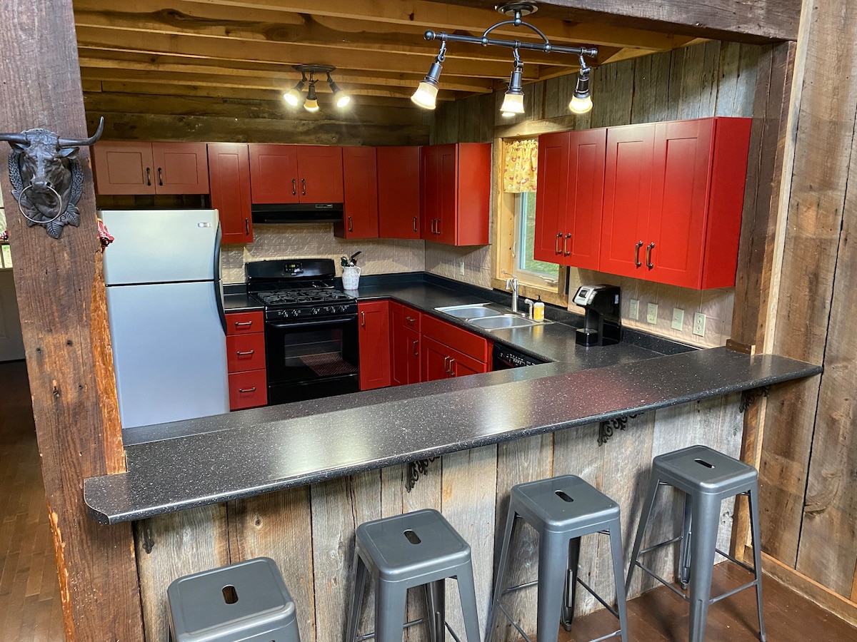 Kirkland Cabin - Stay in a 1907 Log Cabin Perched on the Palisades of The Kentucky River in Lexington. * 2022 Updated Kitchen * King Bedroom and fun loft offering 2 single beds (ladder access) & 1 full bath. This is a cabin built in 1907 & has the character to prove it. Unplug with games or utilize High-speed WiFi. This cabin is 1 mile from I-75 & 15 minutes to downtown Lexington. Enjoy dinner < 1 mile away at Proud Marys BBQ w/ Live music (seasonal)