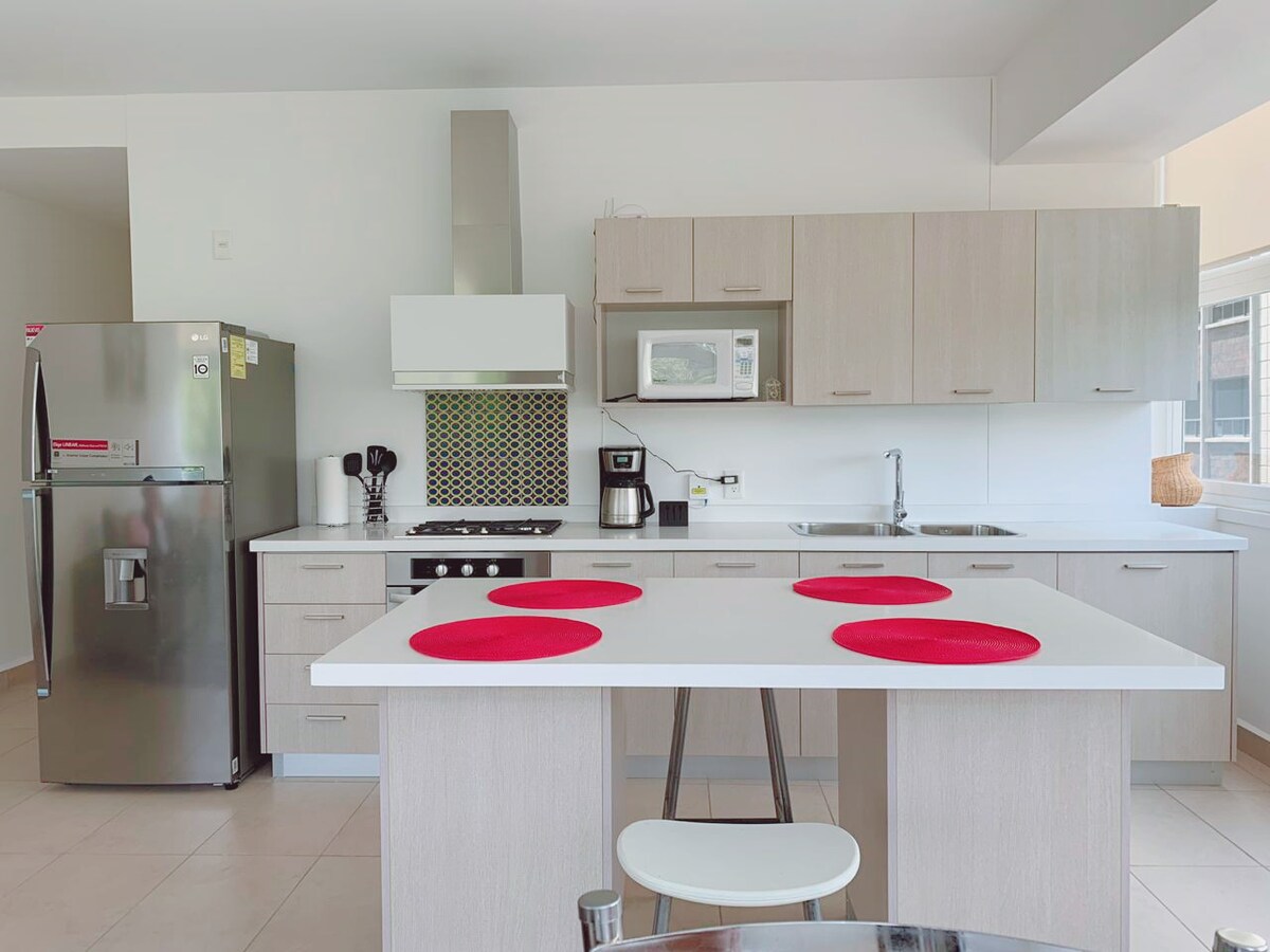 Slapp av på balkongen og se de magiske solnedgangene i Mexico by. Start opp den bærbare datamaskinen og få gjort litt arbeid mens du får fantastisk utsikt gjennom vinduene fra gulv til tak. Slapp av på sofaen mens du ser på Netflix-serien du liker best på den 50-tommers store TV-en. Svøm noen runder i det halvolympiske bassenget eller tren på det fullverdige treningsstudioet. Leiligheten er full av lys og varme. Persiennene og de utvendige baldakinene vil skygge deg når det trengs.