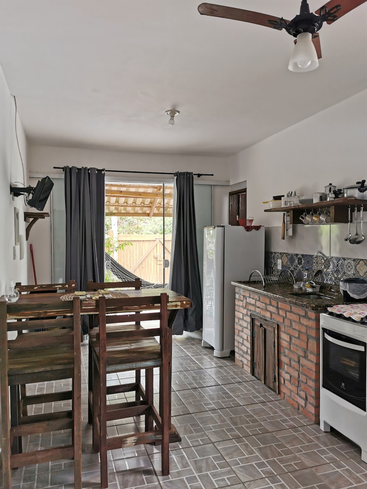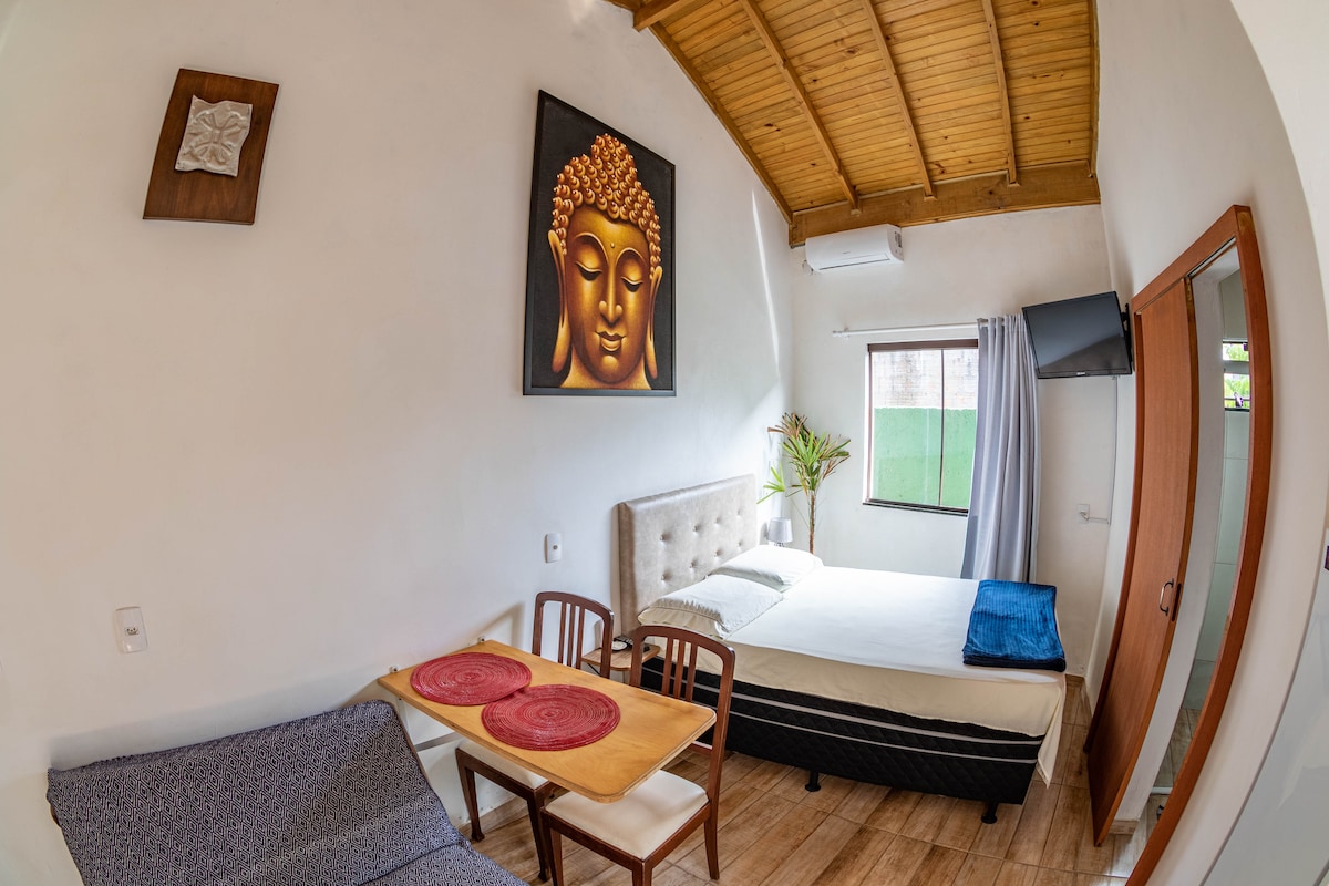 Casa Pedra Zen – et fredelig hjørne på Pedra Branca Uavhengig og koselig tilfluktssted, perfekt for hvile, arbeid eller studier. 650 meter fra Passeio Pedra Branca. Ett soverom med kontor/skrivebord. Sammenhengende stue og kjøkken Komplett bad. Egen uteplass Gjester kan delta på gruppe- eller private yogakurs i studioet på eiendommen. Utstyrt med trådløst nettverk, klimaanlegg, mikrobølgeovn og airfryer, og tilbyr alt for et komfortabelt og avslappende opphold.