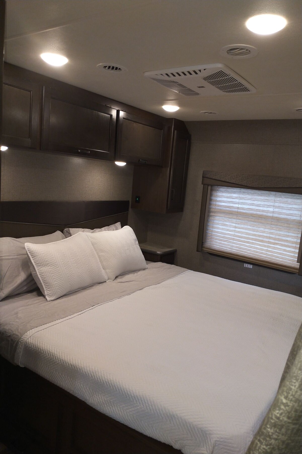 Well appointed RV with private queen bedroom, plus double bunk beds. Features 2 bathrooms including 1 with a full shower which is very rare in a rental RV! Our guests have access to semi-private saltwater pool and hot tub on our property. Camper is fully hooked up with electric, water, and sewer. *Note: We also have a 2nd separate RV pad next to our AirBnB RV that we rent out through HipCamp that may be occupied during your stay.