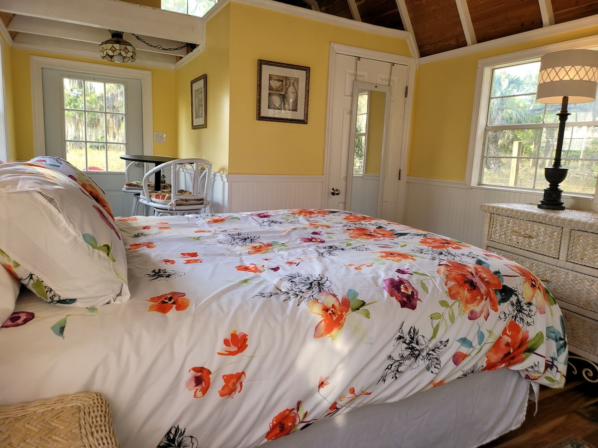 Nyt hvert minutt av FERIEN i denne vakre OASEN ved HAVET. Dette UNIKE OPPHOLDET ligger i en frodig bakgård og er omgitt av innfødte floridiske planter og dyreliv, og har alt du leter etter. King Canopy Temper Pedic Cloud-madrassen får deg til å sove som en baby. Det er også Queen & Double uttrekkbare sofaer med minneskum madrasser for å sove 6 svært komfortabelt! Det spa-lignende badet kan skryte av en marmor/stein dusj, og kjøkkenet er også godt utstyrt. UNIKT Ahh!